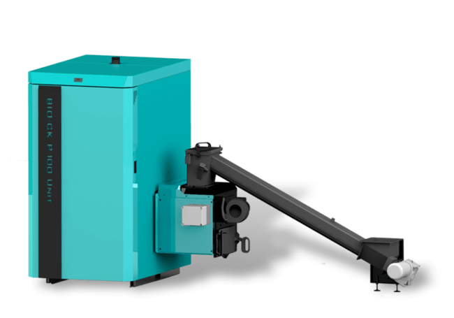 Equipment for central heating systems BIO-CK P Unit (nominal heat output from 25 to 100 kW) is designed for burning wood chips. It consists of a hot water boiler BIO-CK P, a burner with the fuel transporter and digital boiler control. A fuel tank with a transporter and mixer …